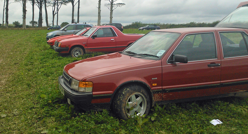Naturally Gav and I stayed pretty much to the end. We saw a few last minute wobbles many would have missed on the course and it meant there weren’t any crowds as we made our way back to the exit. The car park was a quite empty by the time we got back up there and the PetrolBlog stand, such as it was, was looking a little bare, as you can see the focus is on the different and interesting rather than the exotic. Mine was a good fit, even the right colour alongside Gav’s Bangernomics Saab and Adrian’s Brat.